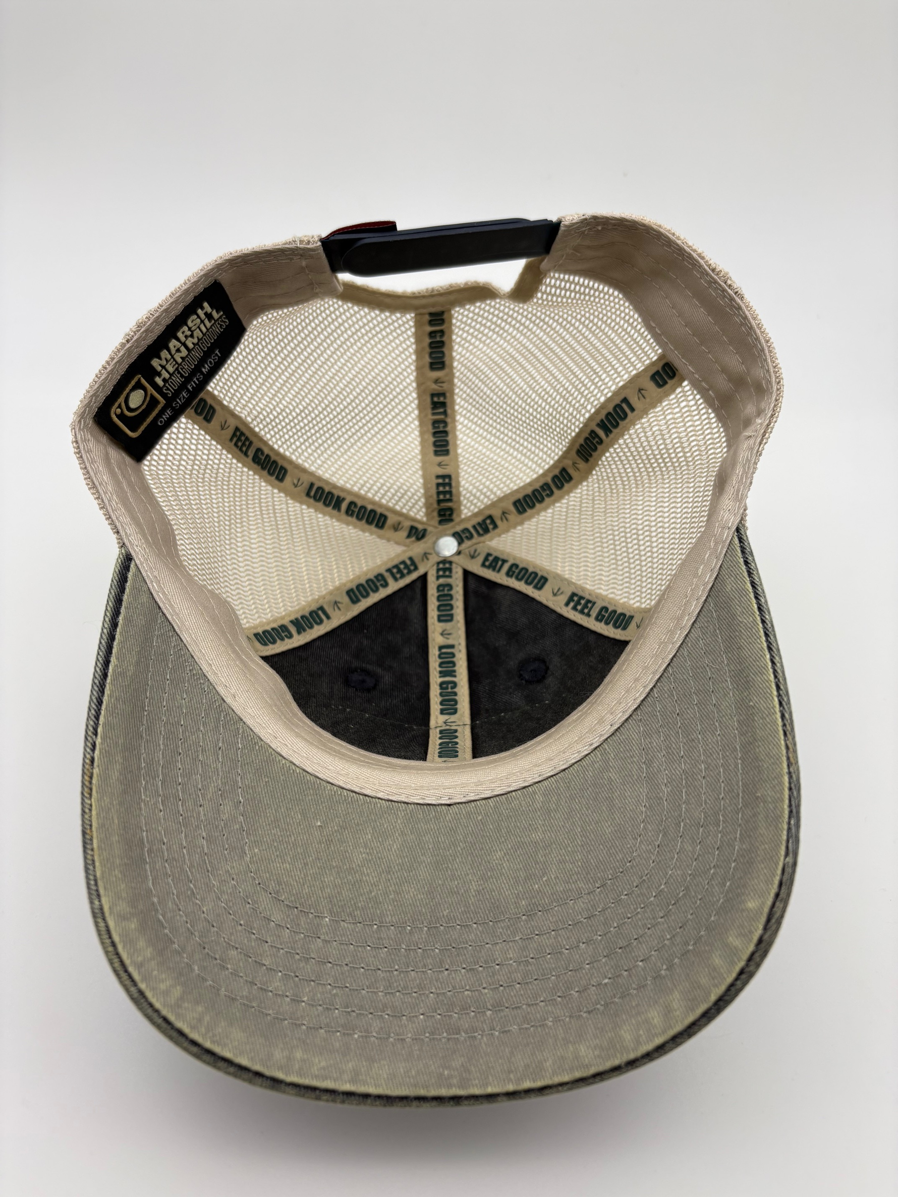 - Adjustable snapback for a comfortable fit
