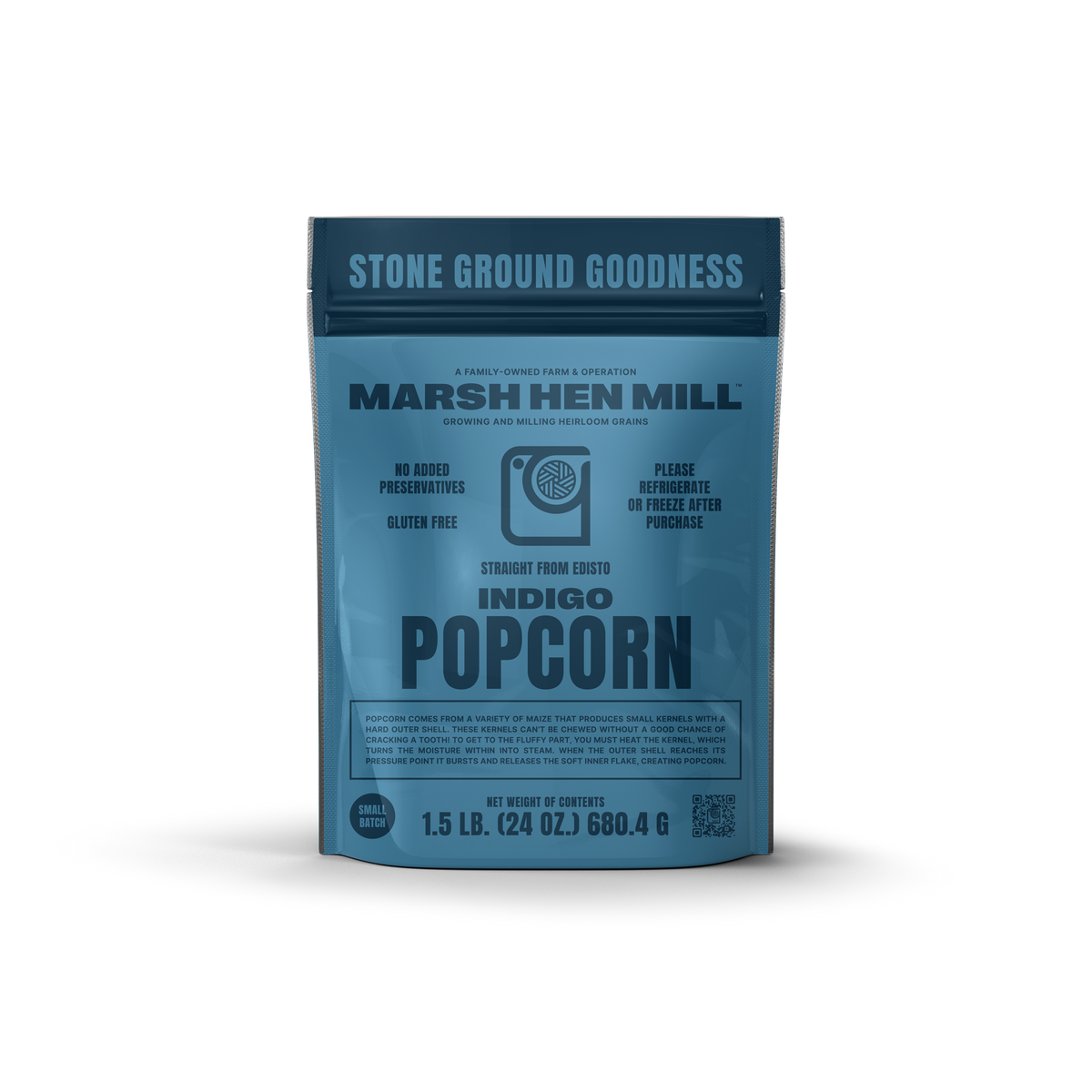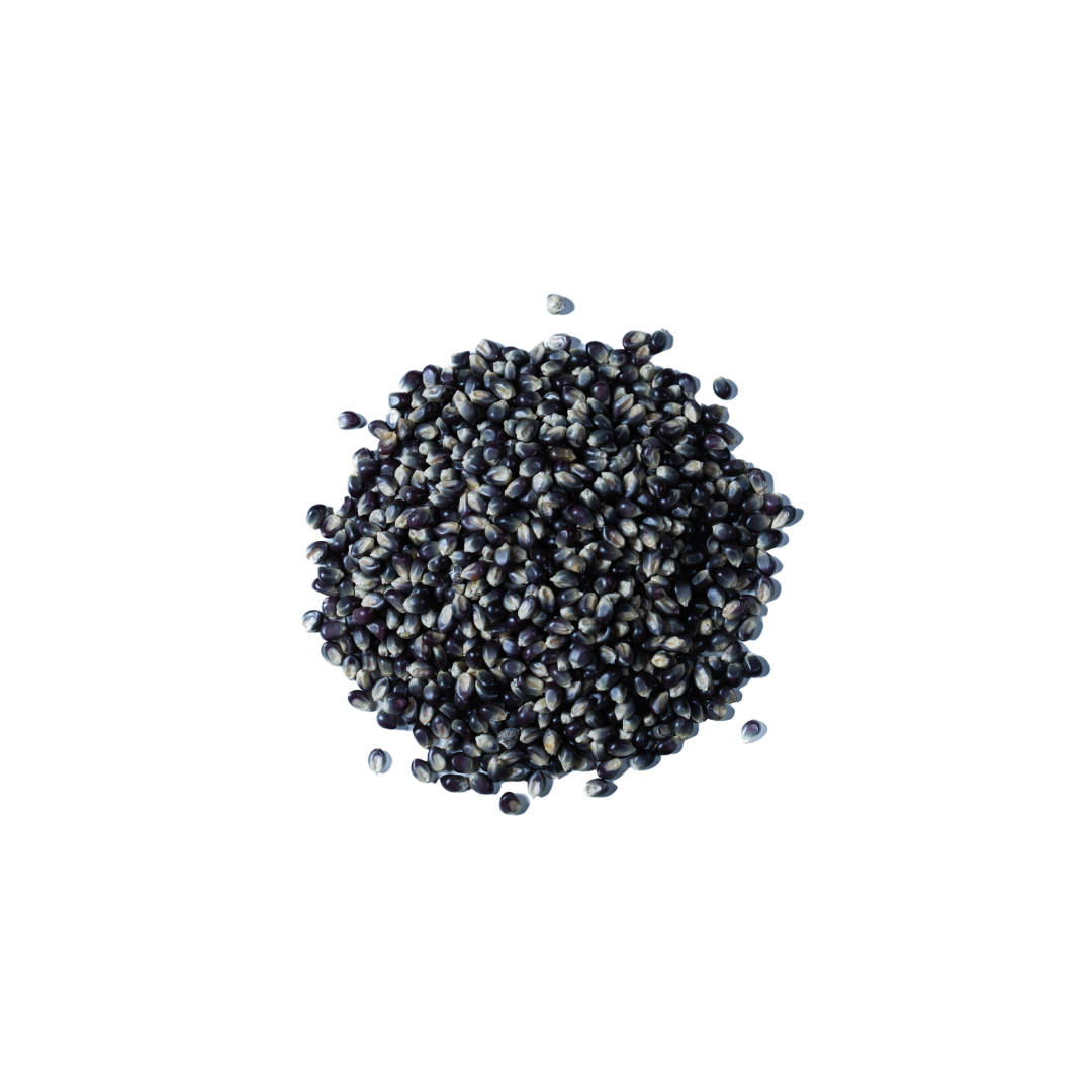 Our Indigo Popcorn begins as tiny, jewel-like kernels of deep indigo blue, each with a rock-hard shell that guards the soft, tender center. Heat transforms them in a dramatic explosion. Trapped moisture turns to steam, building pressure until the kernel bursts open with a satisfying pop, revealing the airy, snow-white flake inside.